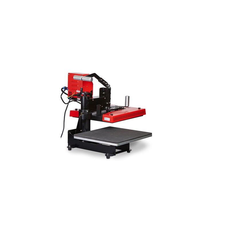 Pressa swing con formato 38 cm x 38 cm. Una manovella regola la pressione rapidamente e comodamente. Apertura laterale, a destra, della piastra riscaldante che appoggiandosi verticalmente alla piastra di base, permette anche ad oggetti più spessi come le felpe con cappuccio di essere pressati senza problemi. Adatta al trasferimento a caldo di pellicole flock, pellicole termoadesive, sublimazione, getto di inchiostro. La compattezza e la facilità d'uso e le dimensioni compatte di 38 cm x 38 cm rendono TS5 Economy salvaspazio e trasportabile, rendendola la pressa ideale per eventi sportivi e culturali o festival. Il controllo è stato volutamente mantenuto semplice per consentire una gestione efficace e garantire un funzionamento intuitivo anche per i principianti. TS5 Economy rappresenta il prodotto base perfetto e compatto che può essere ampliato a seconda delle esigenze grazie alla sua modularità. Opzionali sistema di cambio rapido e piastre intercambiabili.